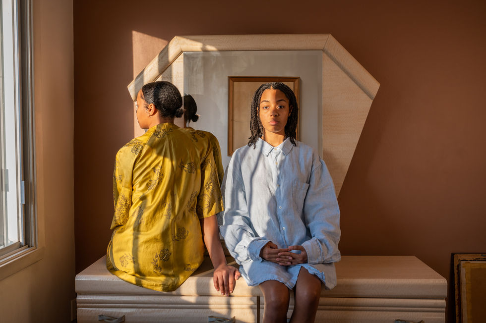 "The texture of memories and the texture of dreams are curiously similar.” - Teju Cole The Texture of Memories is a series examining my family history. The women's lineage in my family traces back to Trinidad and Tobago, which has the largest natural deposit of oil pitch globally. This series focuses on what can be brought over and passed down in a family though generations and what can follow. The black oil is a symbol for this concept of history slowly but continuously reasserting itself in the present. It is used as a reoccurring theme throughout, seeping through generations of women and manifesting itself in the everyday.
